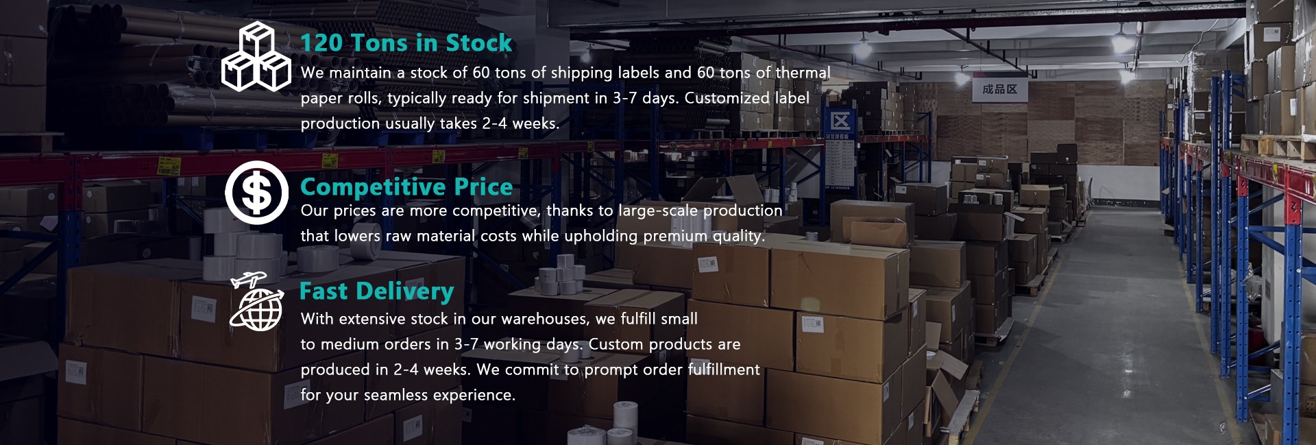 Productos principales:Etiquetas de envío, etiquetas térmicas directas, rollos de papel térmico, etiquetas sin revestimiento, etiquetas de papel revestido